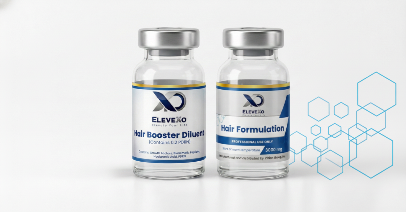 Elevexo develops targeted formulations engineered to support the biological pathways behind healthier skin and fuller, more resilient hair. Each product is built on clinically referenced growth factors, biomimetic peptides, and regenerative actives selected for their roles in cellular repair, vascular support, and structural reinforcement.